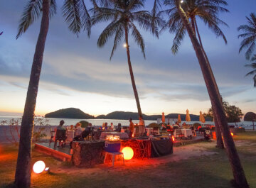 Langkawi Sunset Dinner Cruise This cruise is a great, full day adventure for people who would like to experience some brilliant cruising and the flora & fauna of Langkawi's southern out-lying islands, (these are the islands you see when you are arriving by airplane) without too much effort, and in exceptional style. Calm water cruising, nature excursions, and a great B.B.Q. with a large salad bar, featuring salads from around the world. An open bar of beer, wine, spirits, cocktails, soft drinks, fruits juices and water being served all day. This cruise will make a special highlight to your holiday in Langkawi. The tour will end at 2000hrs.